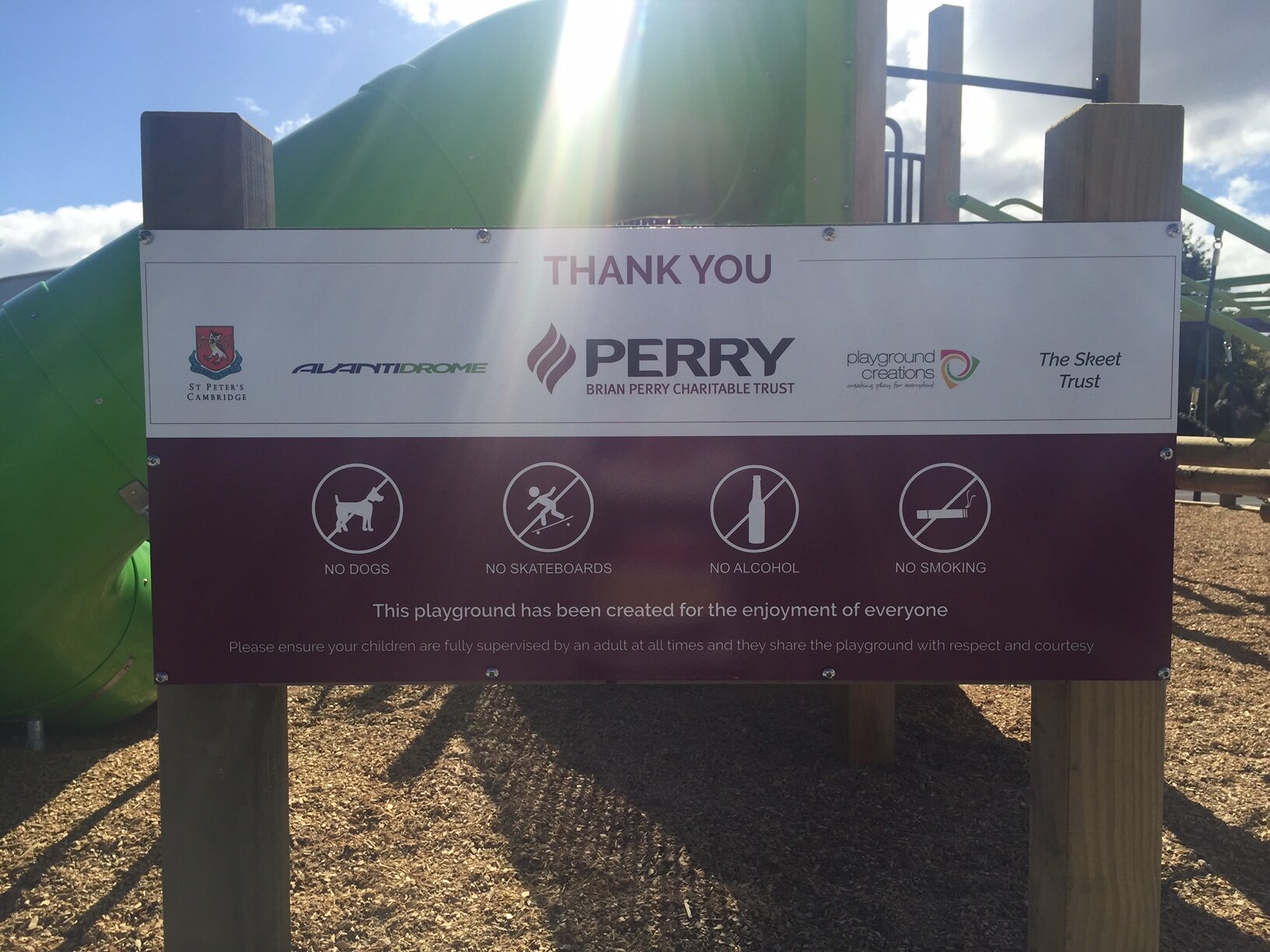 Supporters of the playground include the Brian Perry Charitable Trust, the Skeet Trust, St Peter’s Cambridge, the Avantidrome and Playground Creations.